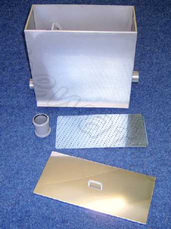 FLUSENKASTEN gefertigt aus rostfreiem Edelstahl, herausnehmbarem Sieb und Deckel mit Griff